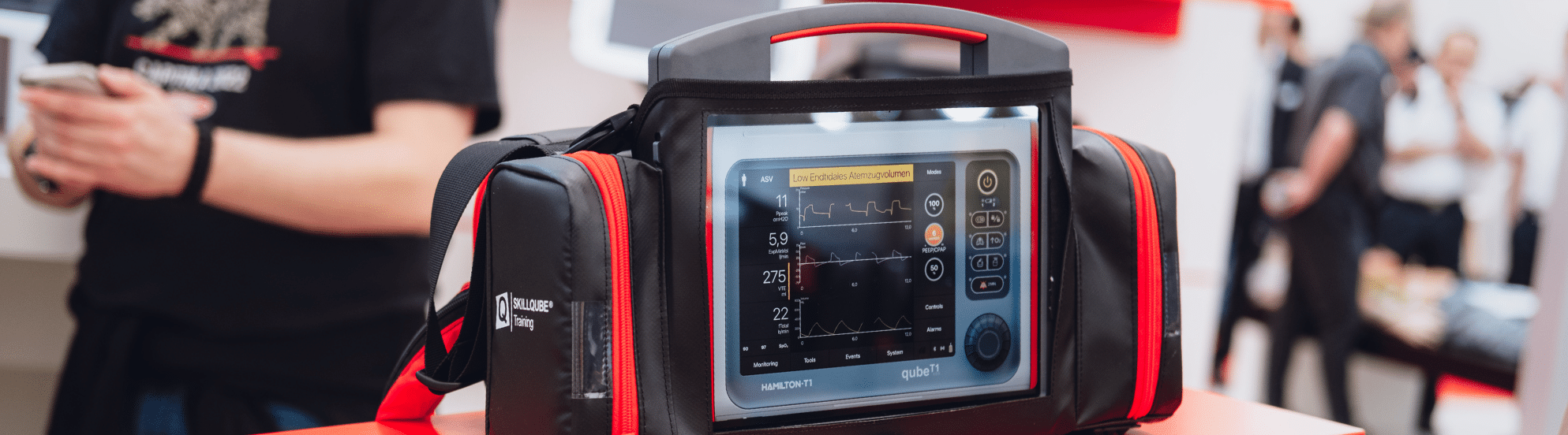 Deshalb nutzen wir bei SKILLQUBE den originalen HAMILTON-T1 als Grundlage für die Entwicklung eines speziellen Beatmungssimulators. So übertragen wir die Bedienoberfläche, Logik und Funktionalität dieses Geräts direkt in unsere Simulationslösung.