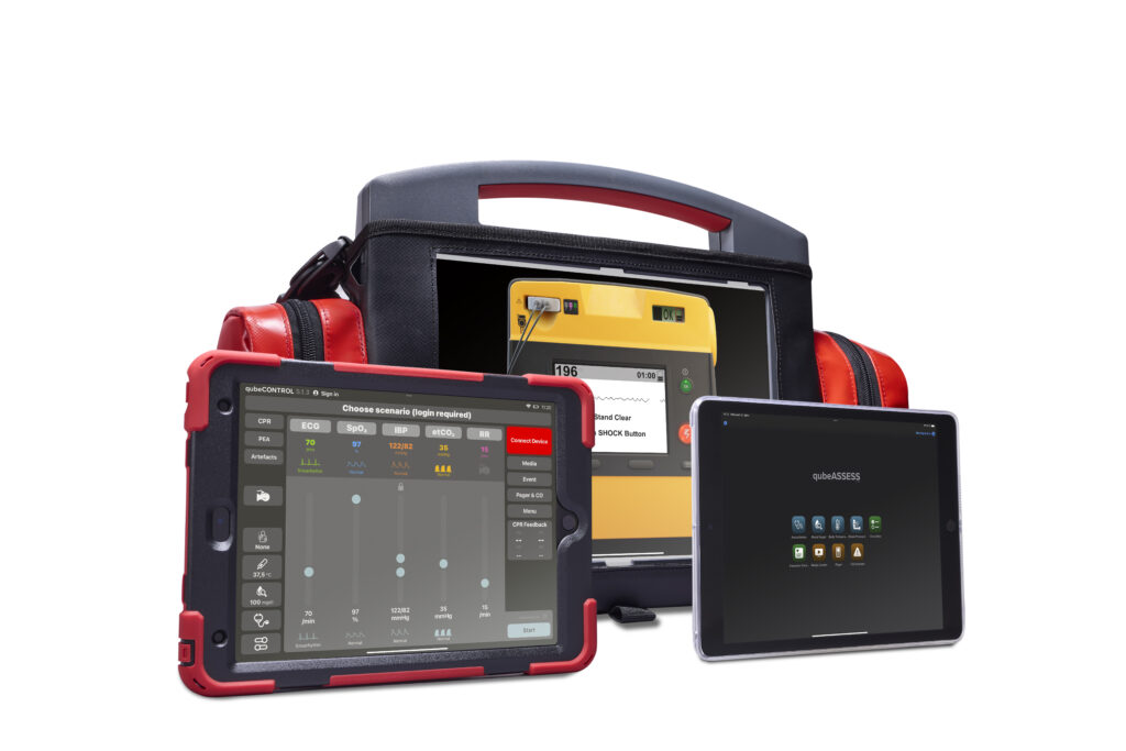Der qubeCONTROL ist die umfangreiche Steuereinheit für den Simulator mit welcher der Trainer das Szenario in Echtheit beeinflussen kann. Spontane, unerwartete Veränderungen des Patientenbildes sorgen im Gegensatz zu einem linearen Ablauf für besonderen Realismus und echte Stresssituationen für die Rettungskräfte. Durch die Anbindung an die qubeCLOUD können bereits erstellte Szenarien geladen und abgespielt werden, läuft etwas doch nicht wie geplant, dann kann der Trainer spontan eingreifen.