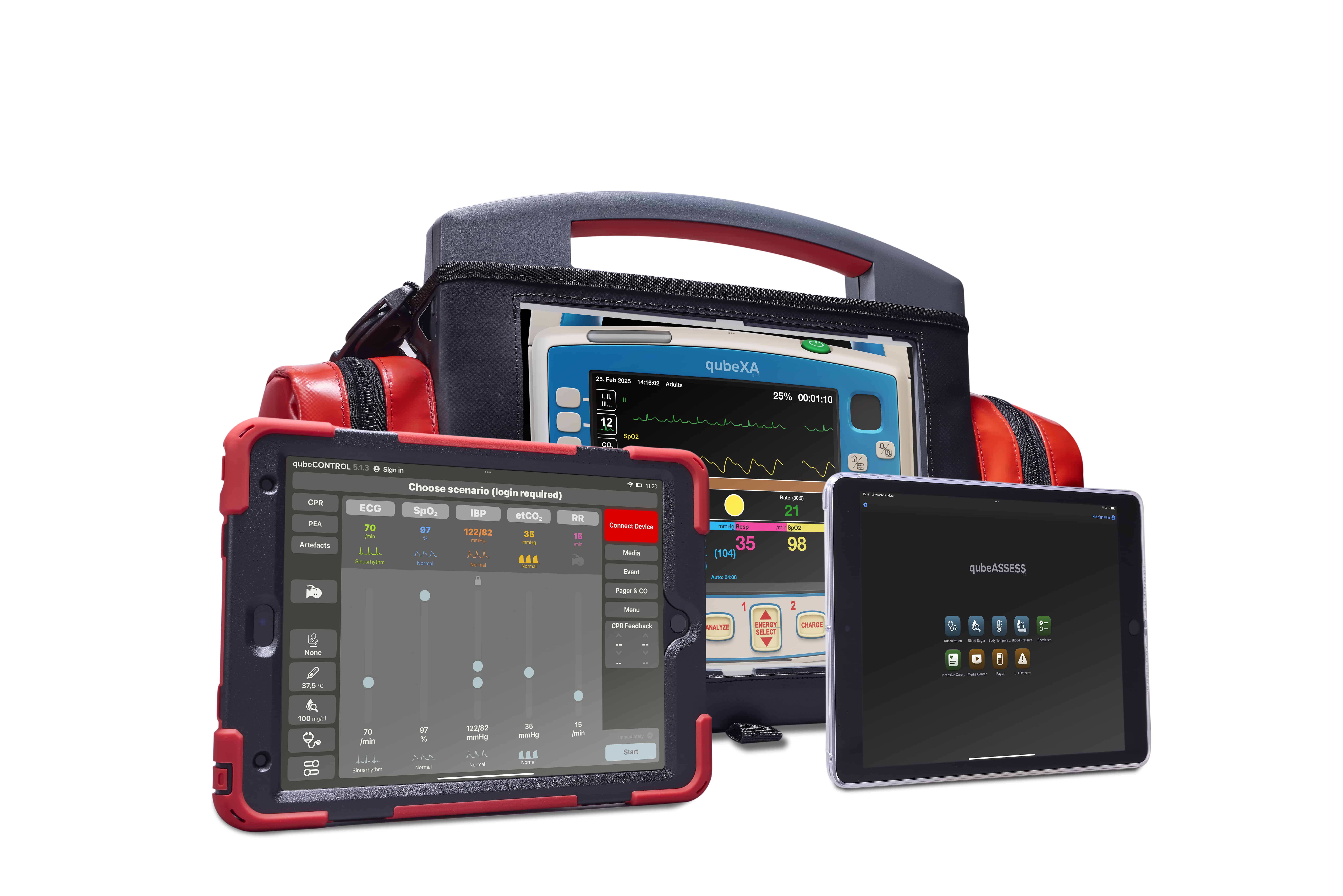 Unser Hardware-Set beinhaltet neben dem Monitor-iPad, dem qubeCONTROL und dem qubeASSESS auch für das Training geeignete Kabelsets für Erwachsene und Kinder. Das Zubehör wird in der Instruktorentasche sicher und kompakt verstaut.